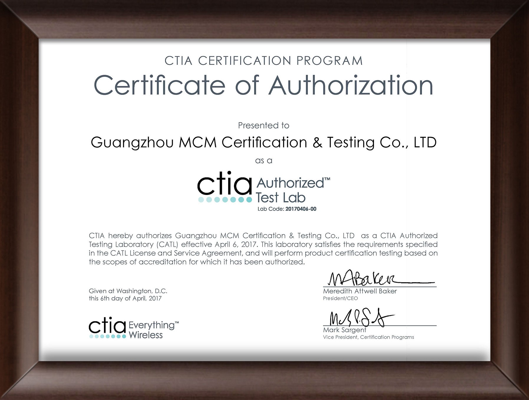 拥有CTIA资质后,MCM在CTIA认证项目的服务完善至: