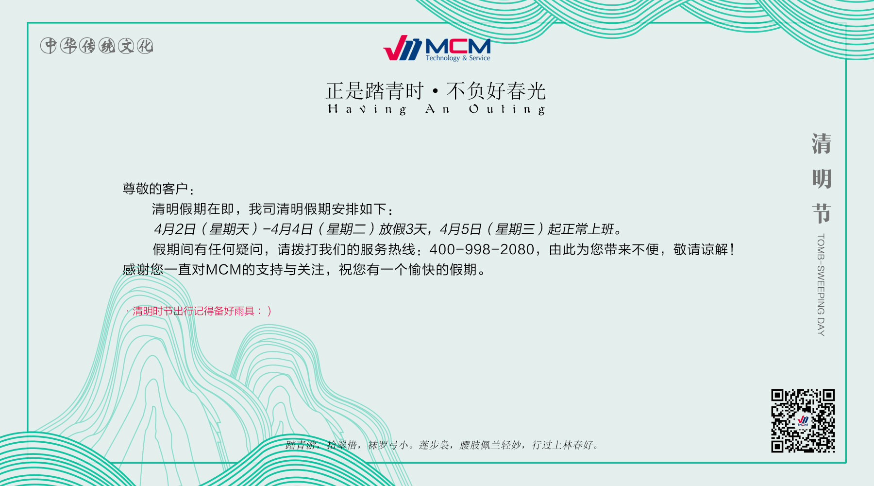 正是踏春时,不负好春光-----MCM清明假期放假通知