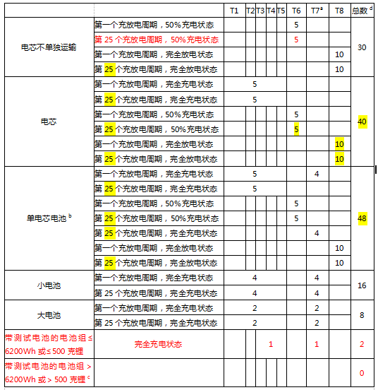 3、由通过UN38.3的测试的电池组成的的电池组,如果Wh数大于6200Wh, 在电池组有防短路、过充、过放的保护措施时可以不用测试。如果锂含量小于或等于6200Wh,在电池组有防短路、过充、电池间的过放等保护措施时只需要两个样品进行T3、T4、T5及T7的测试。